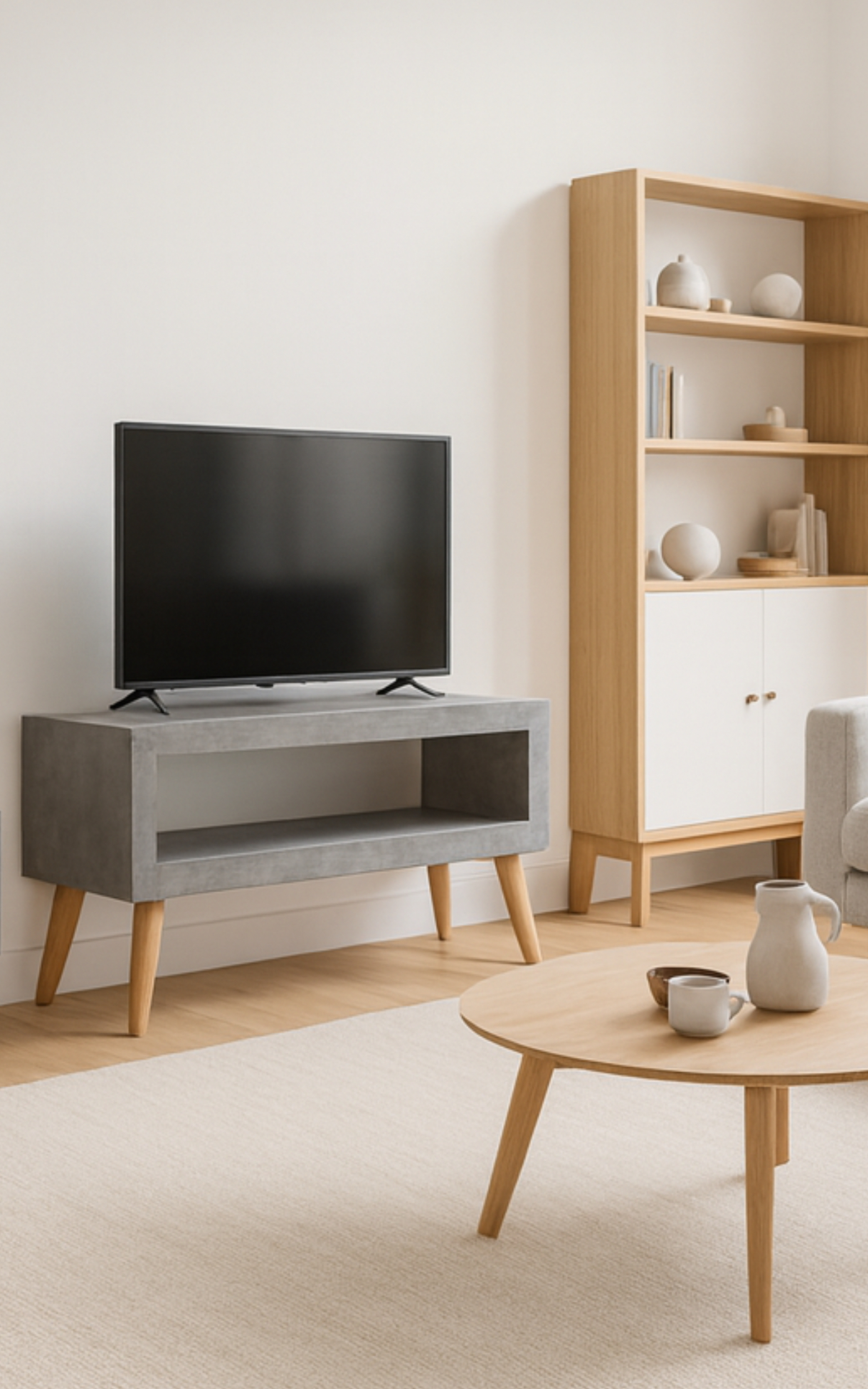 Design épuré pour ce meuble tout en béton ciré , déclinable en meuble tv , table basse …