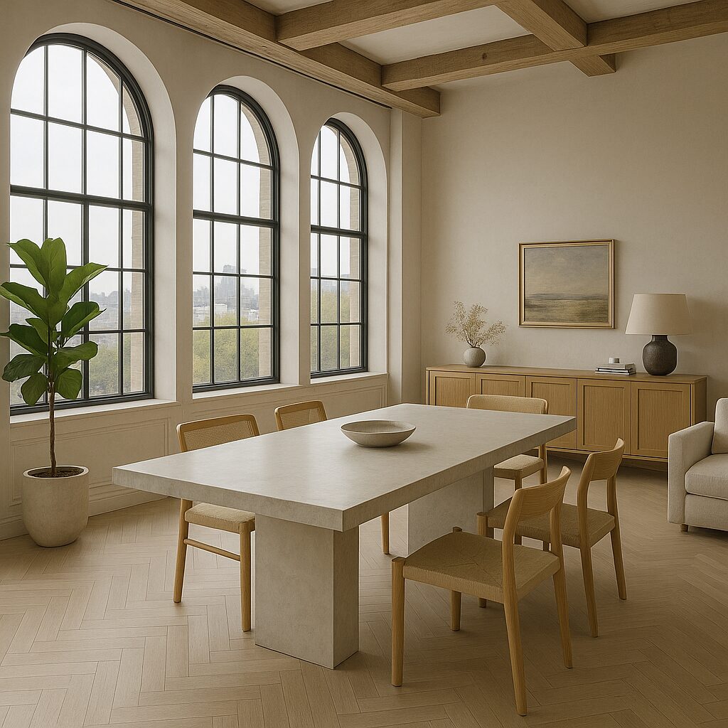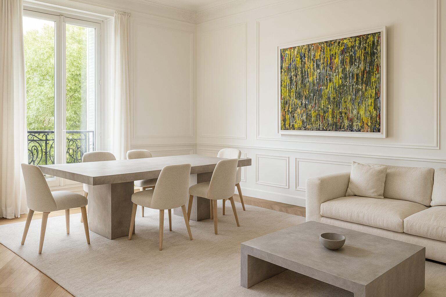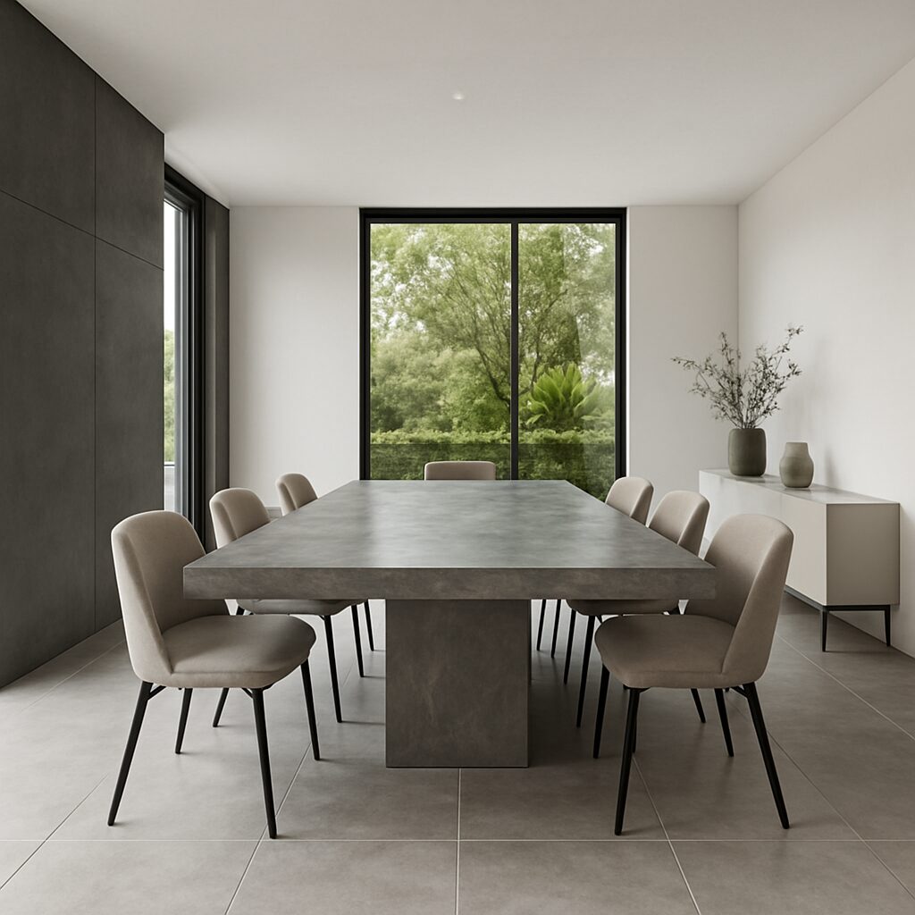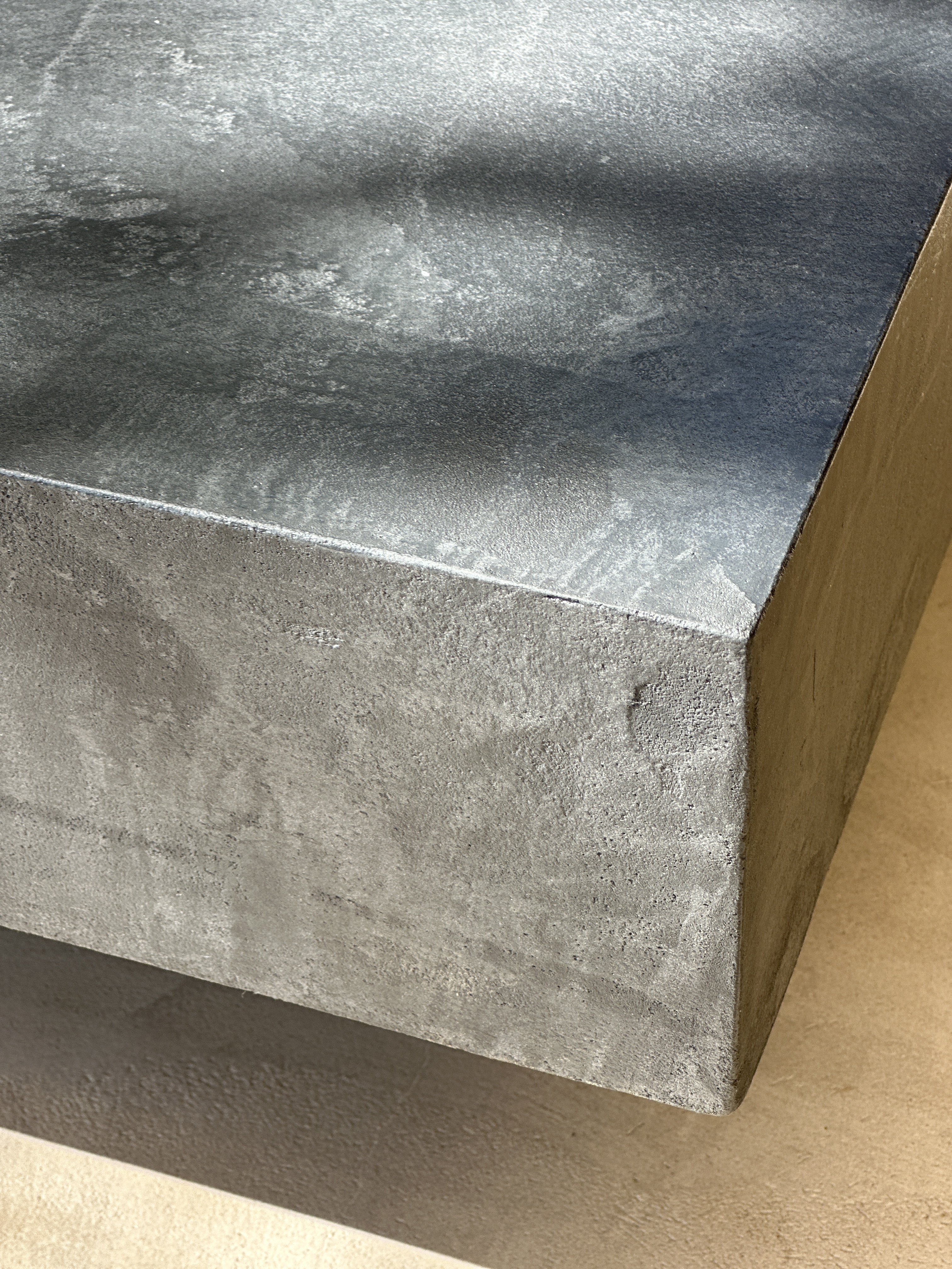 Plateau reposant sur deux socles creux en béton ciré – dimensions des socles personnalisables . Epaissseur de plateau de 40 mm à 90 mm